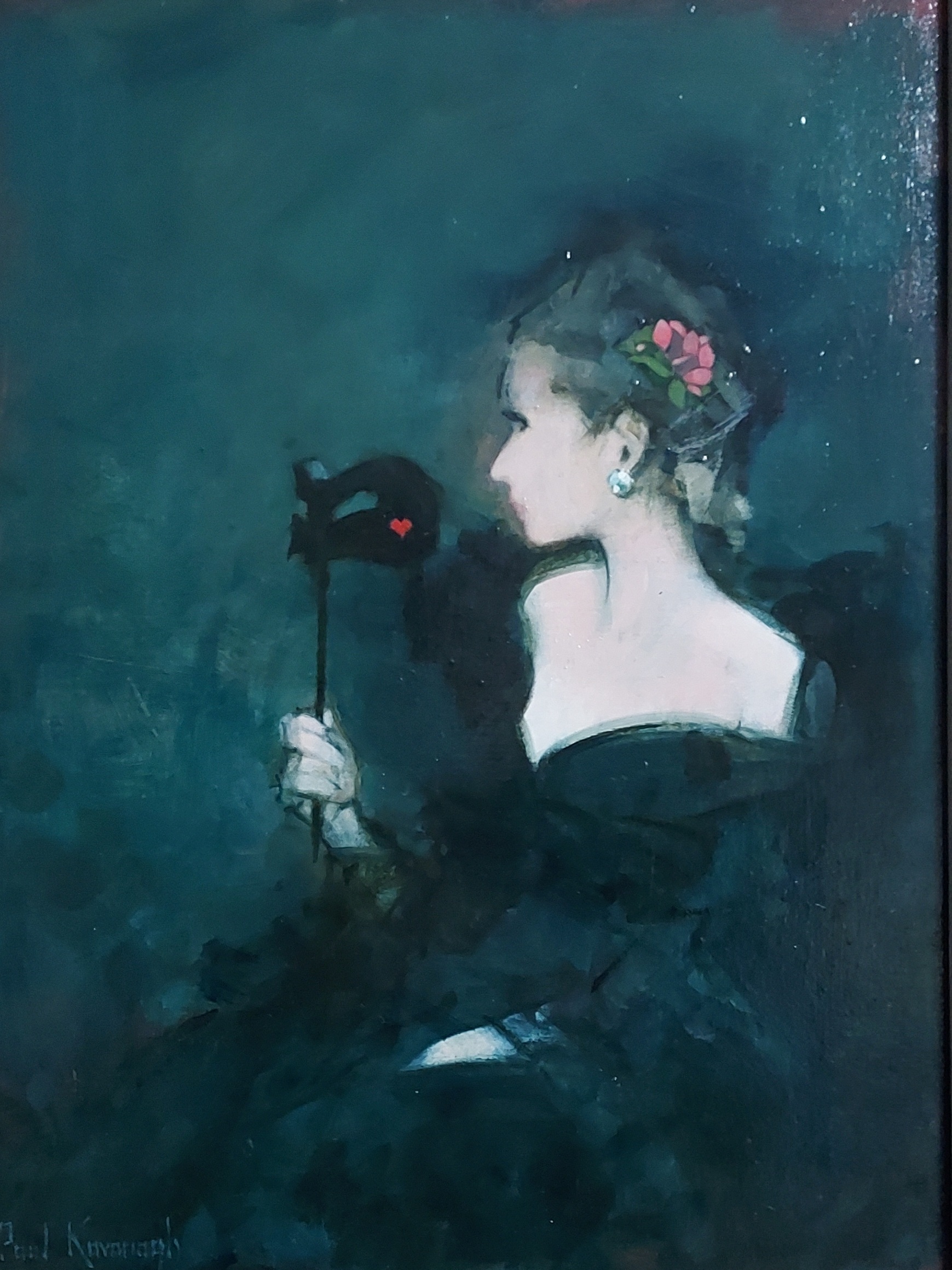 A memory of the dance. He remembered her in her black dress holding the mask away from her face, the pink flower he'd given her that evening in her upswept hair and turning away from him, returning now in memory.